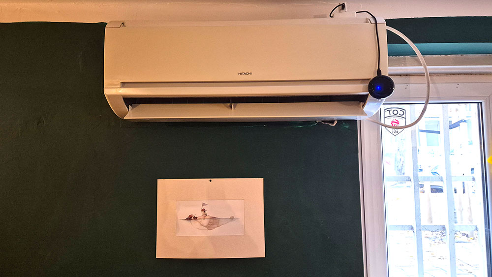Малката стая се отоплява с радиатор, който се включва и регулира от дисплея.